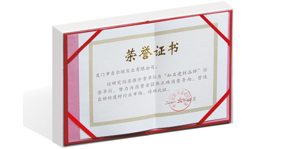 吉爾順實業有限公司獲得《知名建材品牌》: