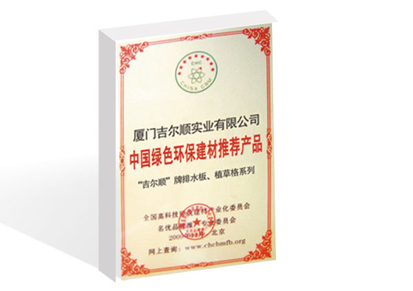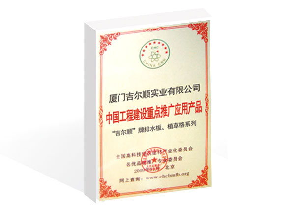 吉爾順實業有限公司的排水板和植草格獲得《2008年度廈門建筑節能推廣產品》: