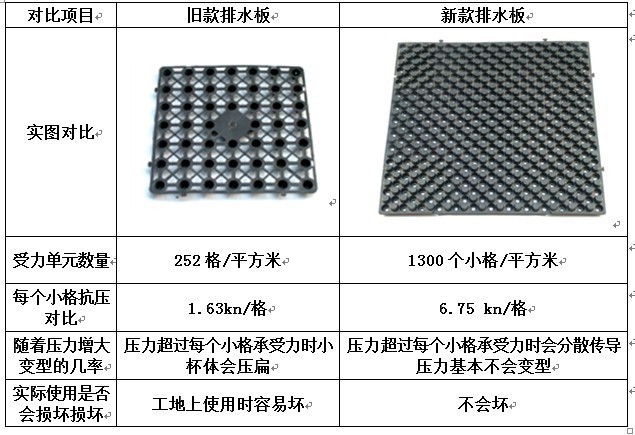 對(duì)比項(xiàng)目 舊款排水板 新款排水板