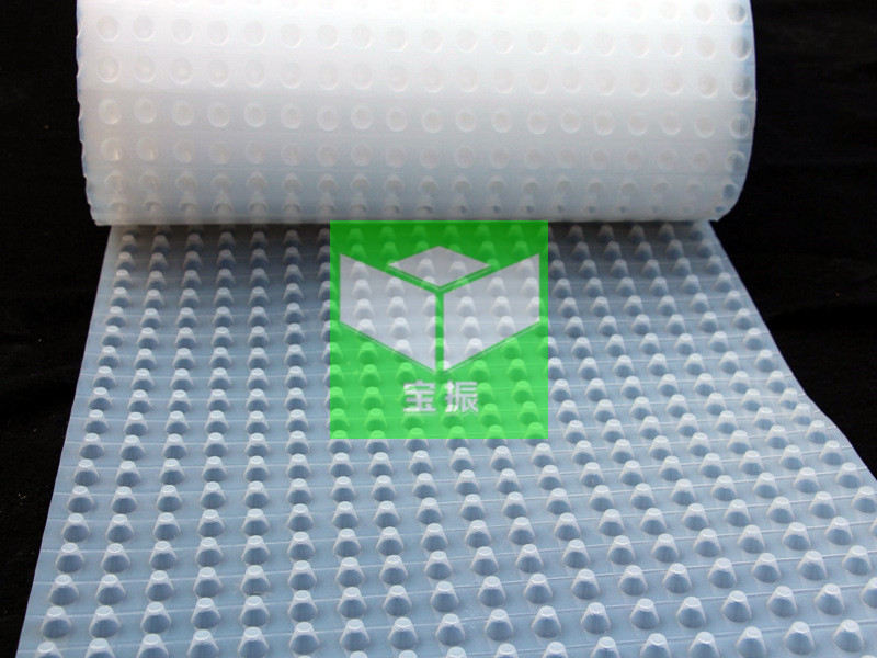 (4)具有良好的隔音及通風防潮功能:聚氯乙烯(PVC)防排水保護板可有效降低室內14分貝,500HZ的噪音,具有明顯的減噪隔音功能。