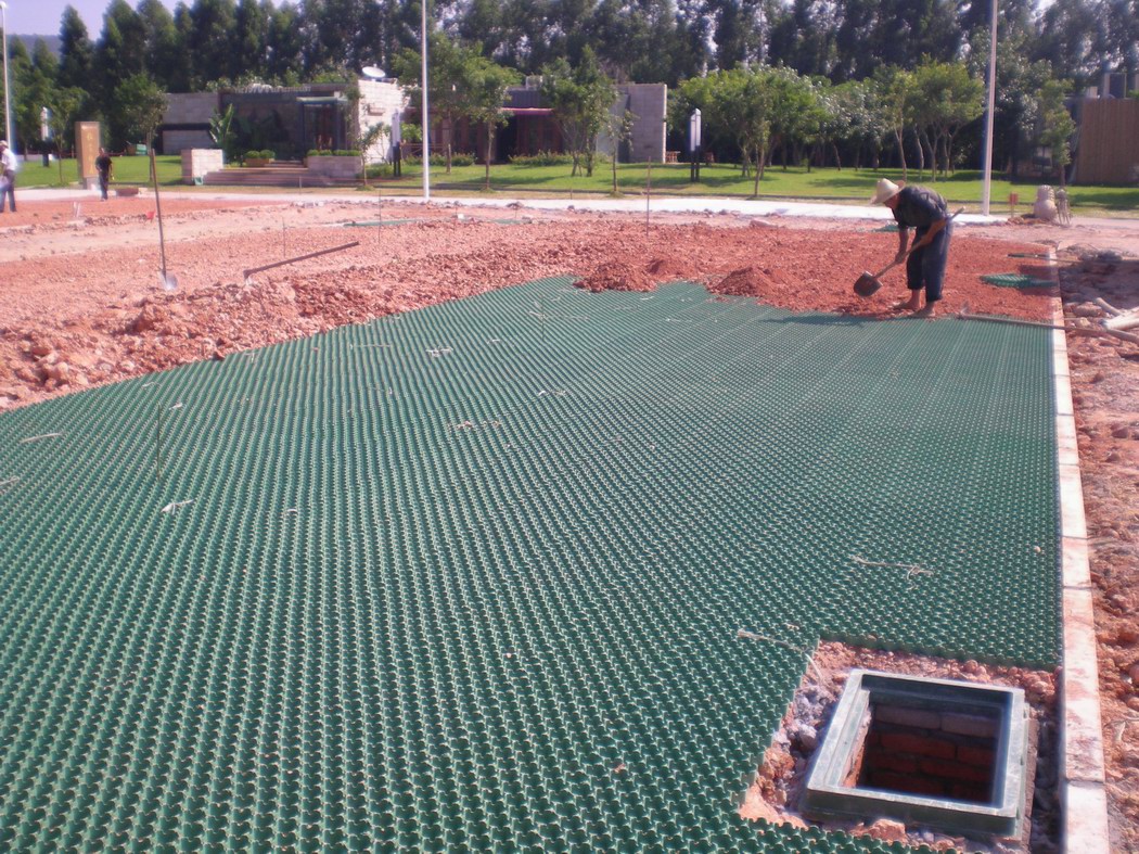 值得注意的是:如果消防車道作為平時車輛的主要通道,由于車輛行駛頻繁,且速度較快,這對植草格的使用及草皮的正常生長不利,反而影響綠化率和美觀, 在這種情況下,我們建議主要車輛交通道路仍采用混凝土路面。只是在消防緊急情況下才有消防車輛駛入的路面則采用植草格路面。同樣道理,停車場的通道路面建議采用混凝土路面,而停車位則采用植草格綠化車位。